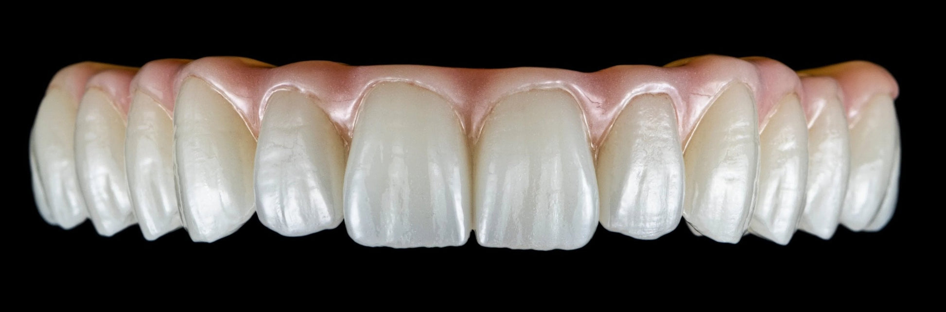 Wariant ART to najwyższy standard suprastruktury, dedykowany dla najbardziej wymagających pacjentów. Wykonana z tego samego cyrkonu z gradientem kolorystycznym, co poprzednie wersje, belka ART jest precyzyjnie wycięta i doskonale dopasowana do implantów/analogów (4-6) oraz okluzji. Wersja ta wyróżnia się dodatkową mikrostrukturą na powierzchni wargowej, która nadaje jej jeszcze bardziej naturalny i estetyczny wygląd. Część zębowa jest starannie charakteryzowana farbami Miyo, a konstrukcja dziąsłowa, jeśli wymaga tego przypadek, pokryta jest ceramiką w odcieniu różowego dziąsła. Całość jest wykończona glazurą, zapewniając perfekcyjną estetykę. Wersja ART to dzieło Mistrza Techniki Dentystycznej, gwarantujące najwyższą jakość i estetykę.