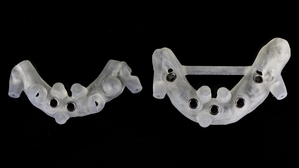 Współczesna stomatologia cyfrowa w tym potężny dział implantologia wymaga szereg działań diagnostycznych. w naszej ofercie znajdziecie państwo zestawy szablonów chirurgicznych które pozwolą na bezpieczne nawigowanie zabiegu implantów u pacjenta. oferowane przez nas szablony mogą występować pojedynczo jak też być połączone punktami referencyjnymi które umożliwiają dokonanie wielu zabiegów dzięki takiemu zestawowi. oprócz właściwego szablonu do wszczepu implantów możemy przygotować szablon korekcji kości oraz szablon natychmiastowych protez Try-in