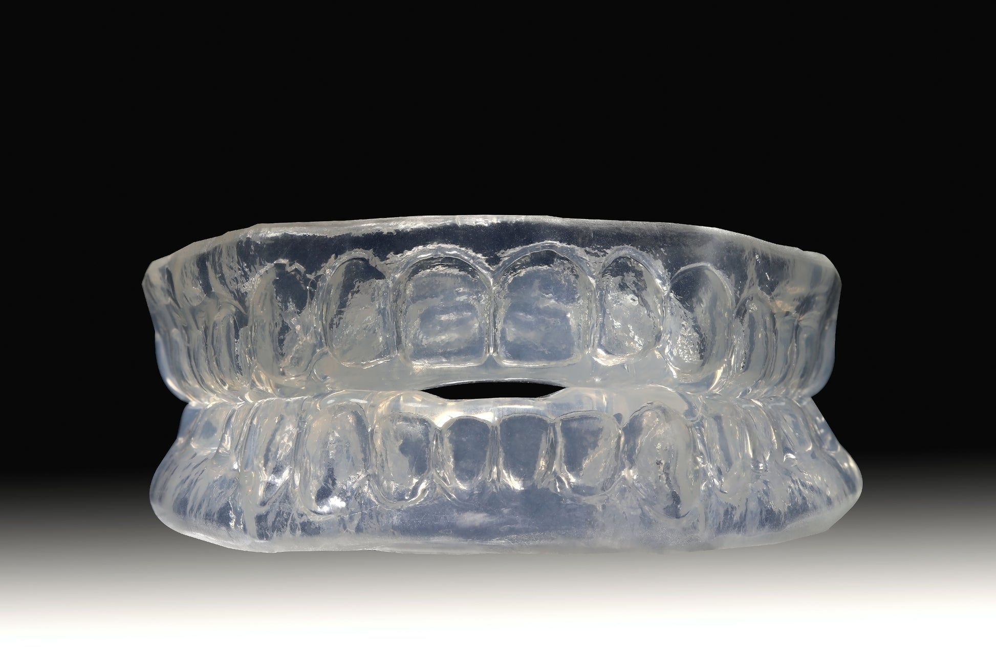 Produkt wykonywany manualnie. Na podstawie wytworzonego modelu 3D z nałożonym cyfrowo waxupem wykonana jest szyna duplikat z materiału firmy GC. Szyna obejmuje zęby oraz część podniebienia w celu lepszej stabilizacji w jamie ustnej. Transparentny materiał pozwala na pełną kontrolę aplikowanego materiału kompozytowego na zęby pacjenta. Dzięki swojej elastyczności szyna jest łatwa do usunięcia z jamy ustnej.