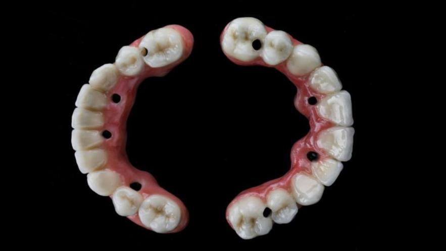 Try-In oferujemy w 2 rodzajach: wydrukowane w całości w technologii 3 d lub frezowane z 2 komponentów z materiału PMMA róż oraz materiału PMMA kolor zębów.
